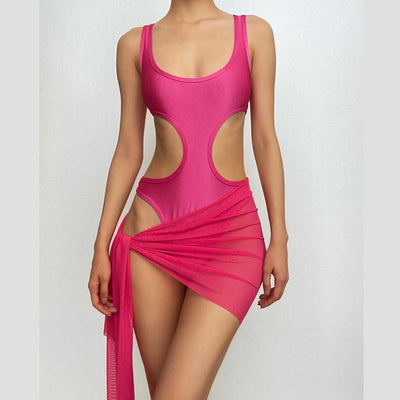 Sheer mesh see through solid ruffle ribbon sleeveless mini skirt set