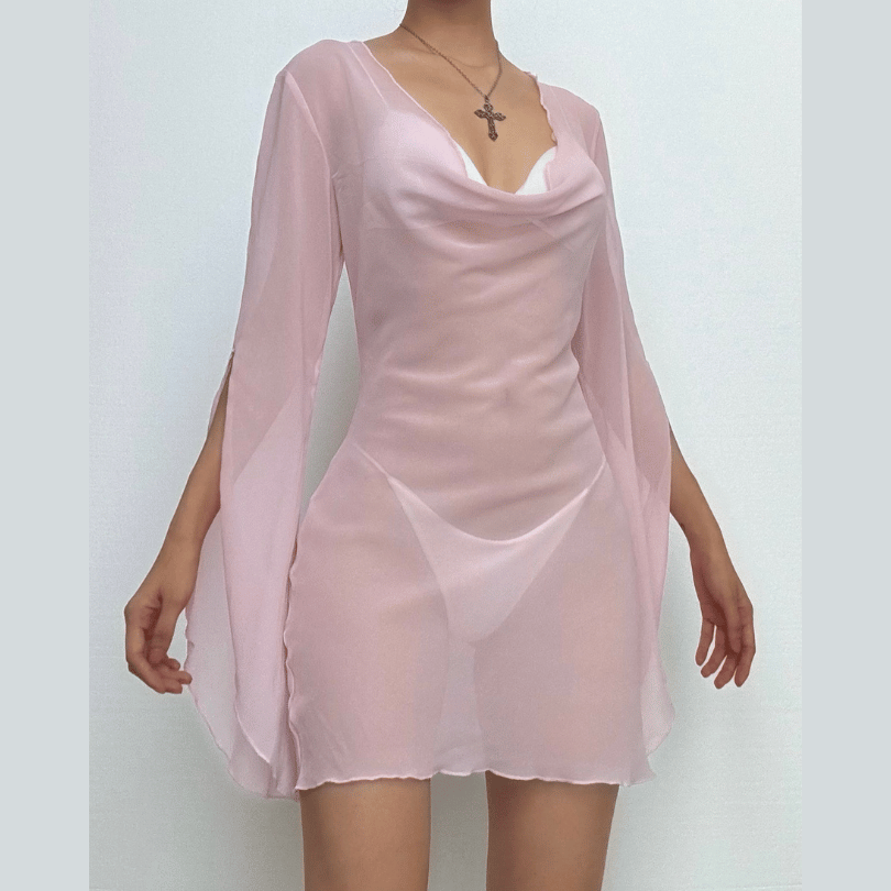 Cowl neck long sleeve backless chiffon mini dress | Festival Outfits Women