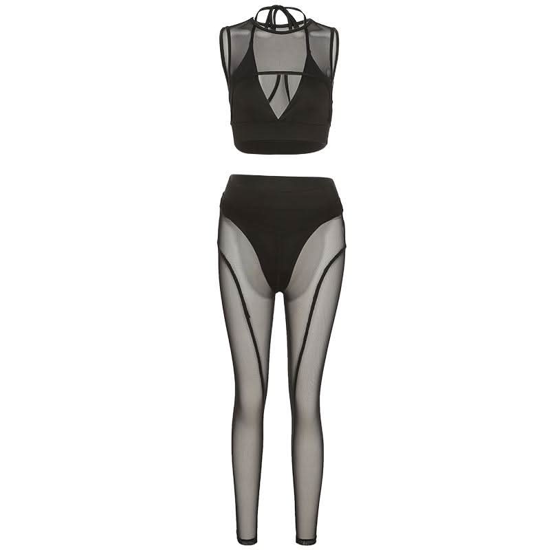 Crewneck hollow out mesh medium rise pant set | Festival Outfits Women