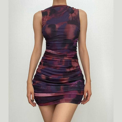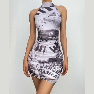 Abstract contrast cowl neck halter backless irregular mini dress-final-sale