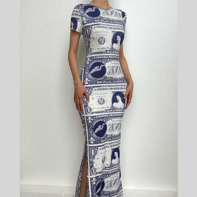 Square neck contrast print backless slit cami maxi dress-final-sale