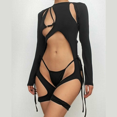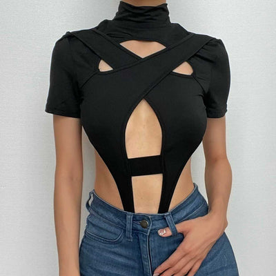 Long sleeves hollow out cross back bodysuit