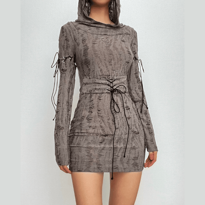 Hoodie ruched gloves irregular sleeveless slit maxi dress