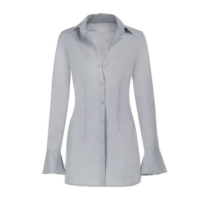Turnover collar solid long sleeve self tie v neck crop top-final-sale