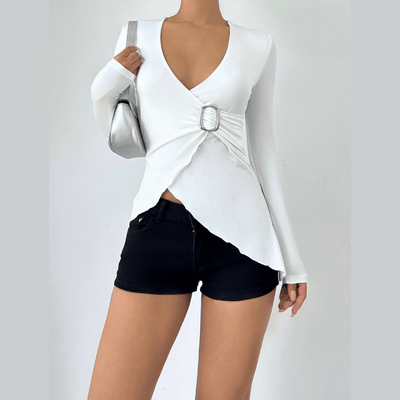 Irregular long sleeve hollow out ruched one shoulder cut out top-final-sale
