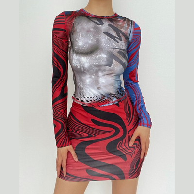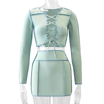Hollow out long sleeve halter skirt set