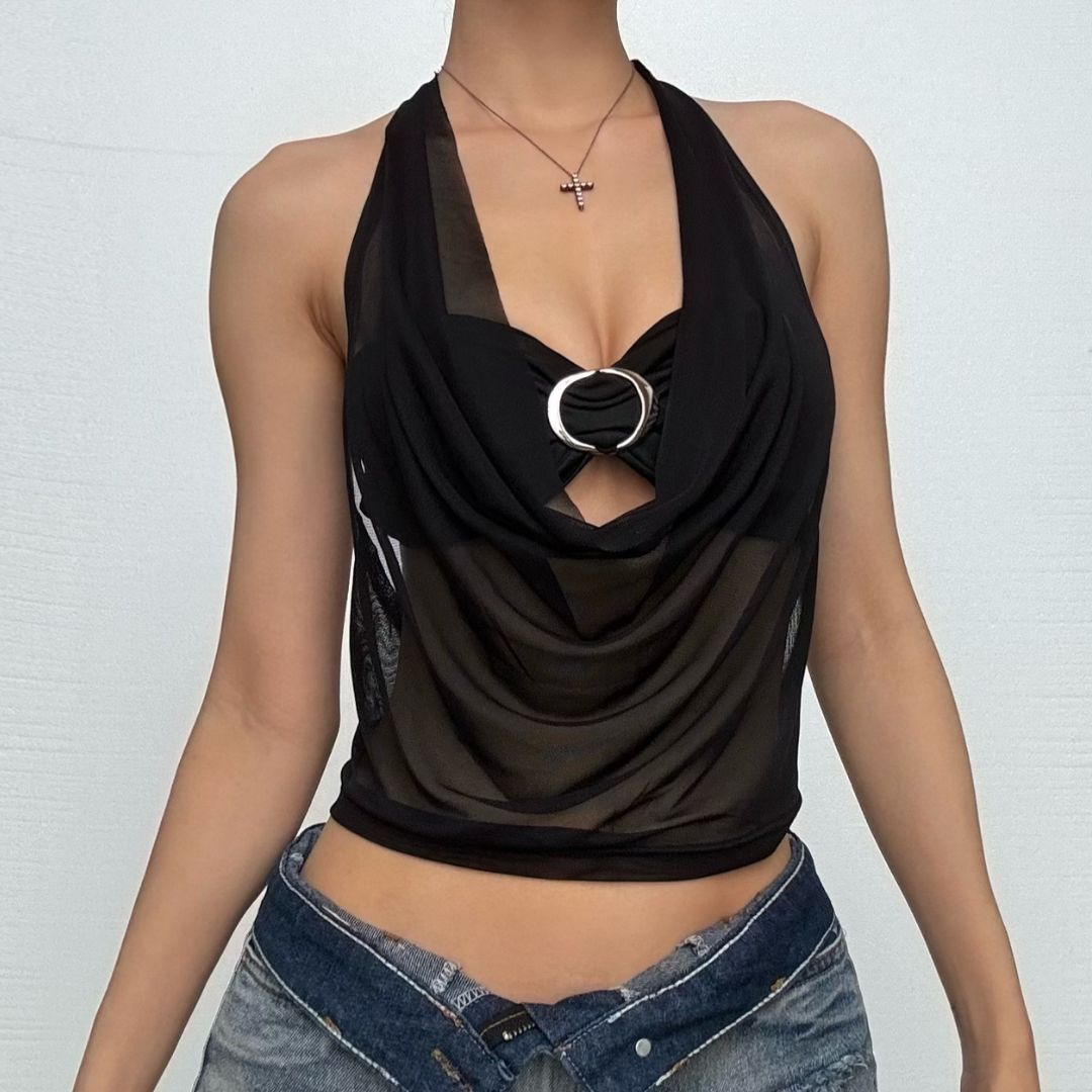 Halter self tie mesh backless solid 2 piece top | Festival Outfits Women