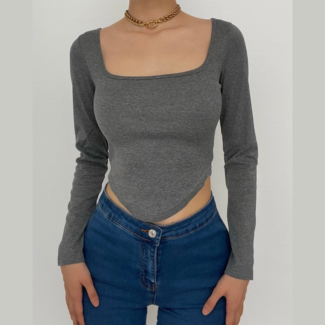 Flared sleeve ruffle stitch open tie back ribbed crop top