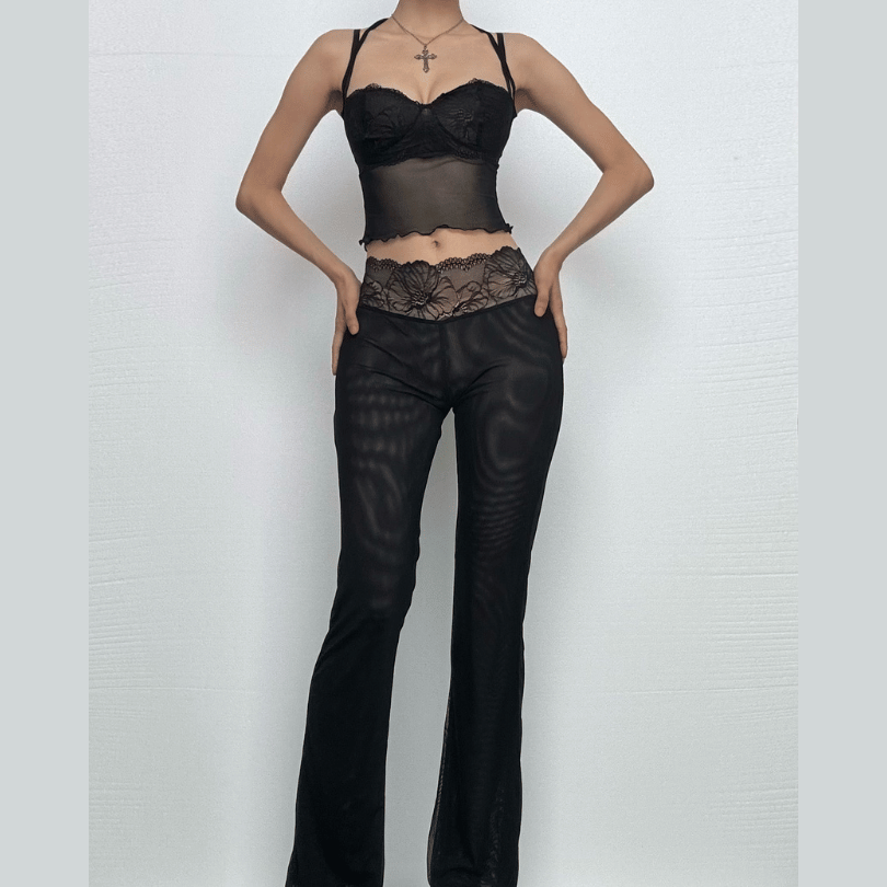 Lace mesh ruffle sweetheart neck cami pant set | Festival Outfits Women