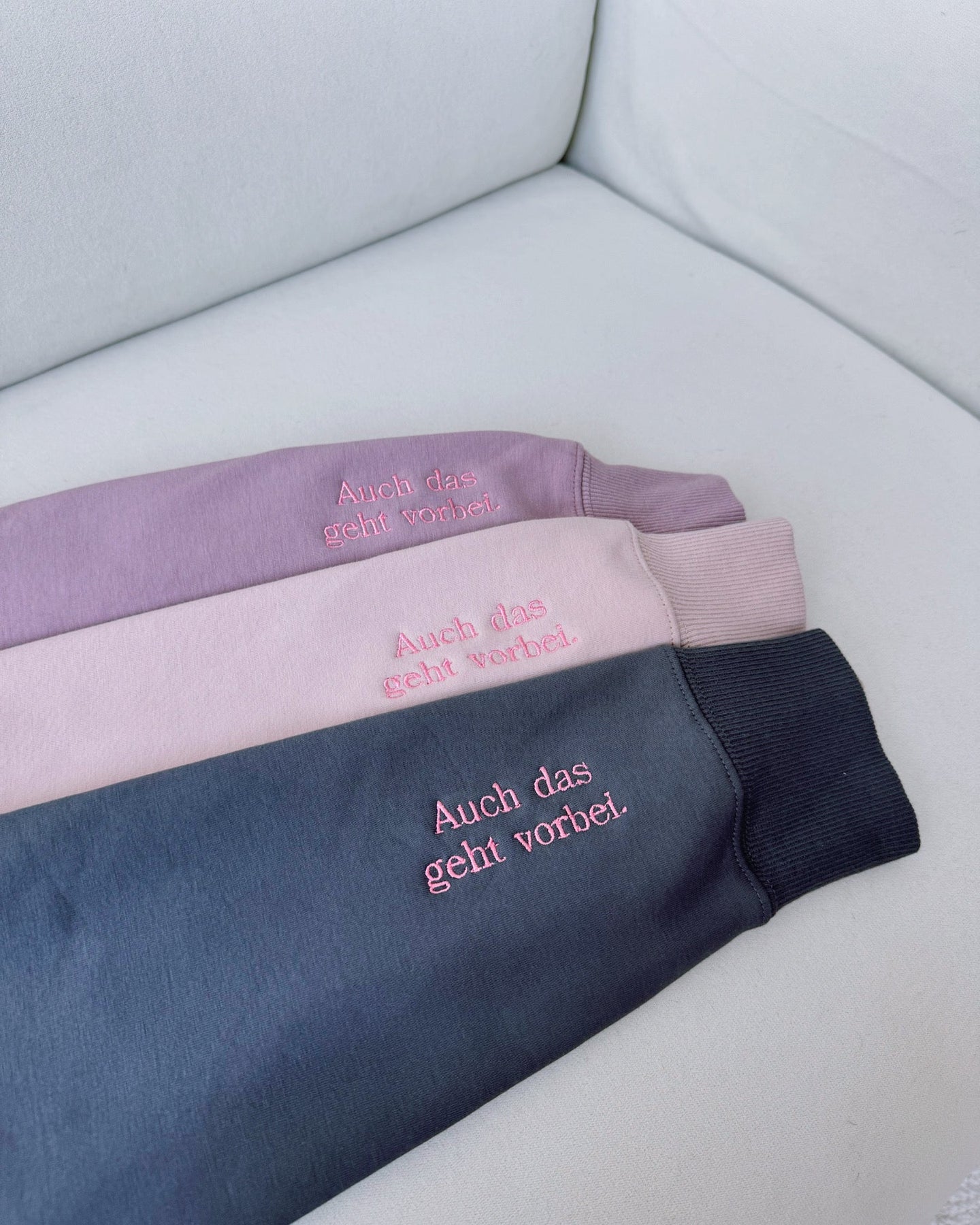 "Auch das geht vorbei." auf den inneren Handgelenken bestickt